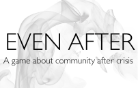Even After is a collaborative tabletop role-playing game about Community rebuilding after a world-altering crisis. The nature of that crisis is unimportant. What matters is that it happened, and in its aftermath remain the survivors.